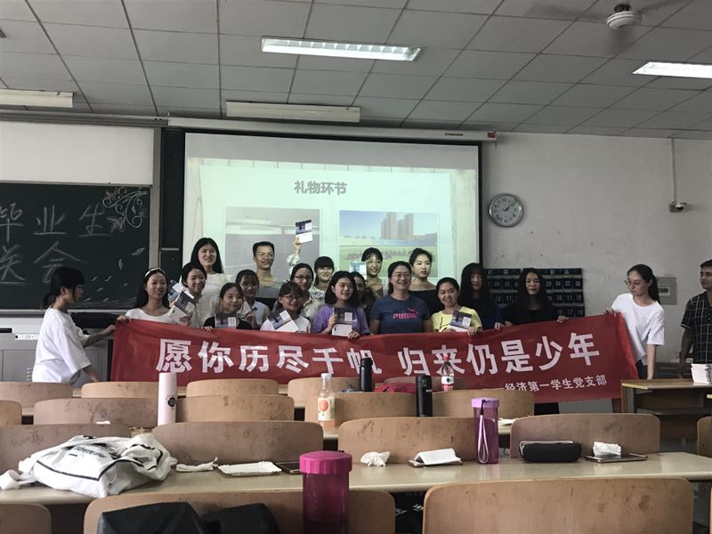 烈日骄阳,当抛起的学士帽缓缓落下,离别的笙歌围绕着整个bat365在线中国官网登录入口,一条崭新而鲜艳的欢送横幅被挂起,我们送别即将要离开的2014级全体党员。本次经济第一学生党支部“欢送毕业生党员”活动于2018年6月29日下午在教2-405举行,参加本次活动的人员有经济第一学生党支部书记曲峡老师以及经济第一学生党支部全体学生党员。
