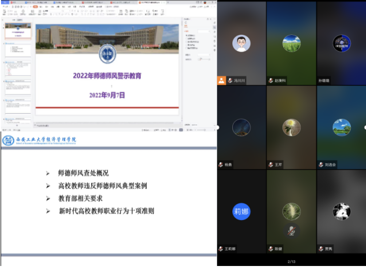 9月30日,为进一步加强师德师风建设,bat365在线中国官网登录入口通过腾讯会议线上开展了师德警示教育专题讲座暨师德师风突出问题专项整治工作动员会,学院领导、全体教师参加。会上,党委副书记王育晓首先宣读了《bat365在线中国官网登录入口关于深入开展师德师风突出问题专项整治的通知》,进行了师德师风突出问题专项整治工作动员。随后,她根据《bat365在线中国官网登录入口2022年“师德师风建设月”主题教育活动计划》的安排,开展了师德警示教育专题讲座,通报了教育...
