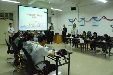 bat365在线中国官网登录入口学生会于9月29日在教5-502成功举办了“千禧万辩”辩论赛。学生会主席赵俊、秘书长王媛媛、2016级优秀学生代表王沛东、往届优秀辩手丁奇、沈至辰、王泽斌、邵艳林等应邀担任本场评委嘉宾。