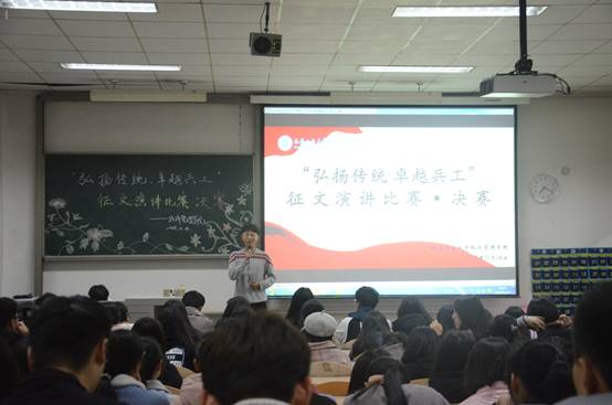 为了传承兵工精神,弘扬红色文化,加强传统文化教育,bat365在线中国官网登录入口学生会于11月14日晚19:00在教2-110举办了“弘扬传统,卓越兵工”征文演讲比赛决赛。bat365在线中国官网登录入口团学组织主席团担任此次比赛的评委,近百余名同学观看了此次比赛。