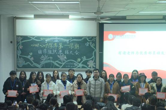 大会伊始,侯剑波老师进行了讲话。他指出学生干部们参与活动的过程中应如何提高自己的综合能力、如何推动部门活动创优创新、如何“走”出去。同时也强调大家应重视学业,做全能型人才。之后,团学组织秘书长王媛媛对本学期365官网活动进行了整体概括。她号召大家时刻准备好主动学习的姿态,不断完善自我,积极为组织贡献自己的力量。随后,各部门部长依次上台进行总结答辩,回顾本学期的工作亮点,对存在的问题进行反思并提出改进方案,并对下学期的工作进行规划,侯剑波老师就具体问题进行了针对性的指导。随后,侯剑波老师为团学组织各部门优秀部员颁发荣誉证书并进行合影留念。