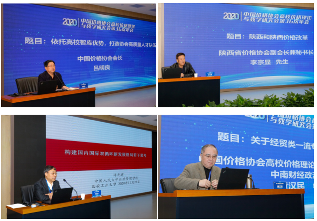 第二阶段学术年会分别由中国价格协会高校价格理论与教学研究会副会长、西南财经大学教授张剑渝和中国价格协会高校价格理论与教学研究会副会长、西安交通大学教授石榴红主持。中国价格协会会长吕明良以《依托高校智库优势,打造协会高质量人才队伍》,陕西省价格协会副会长兼秘书长李宗显以《陕西及陕西价格改革》,中国价格协会副会长、中国价格协会高校价格理论与教学研究会副会长、中国人民大学教授许光建教授以《构建国内国际双循环新发展格局的若干思考》,教育部经济与贸易类专业教学指导委员会委员、国务院学位办全国国际商务专业学位研究生教学指导委员会委员、高校价格理论与教学研究会副会长、中南财经政法大学黄汉民教授以《关于经贸类一流专业建设的若干思考》等为主题开展了精彩的学术报告。