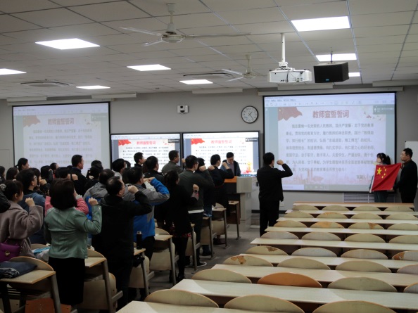 会议第一阶段,党委书记、副院长姬浩带领全院教师面对国旗,举起右手庄严宣读教师誓词。宣誓仪式后,全体教师签订了《bat365在线中国官网登录入口教师承诺书》。