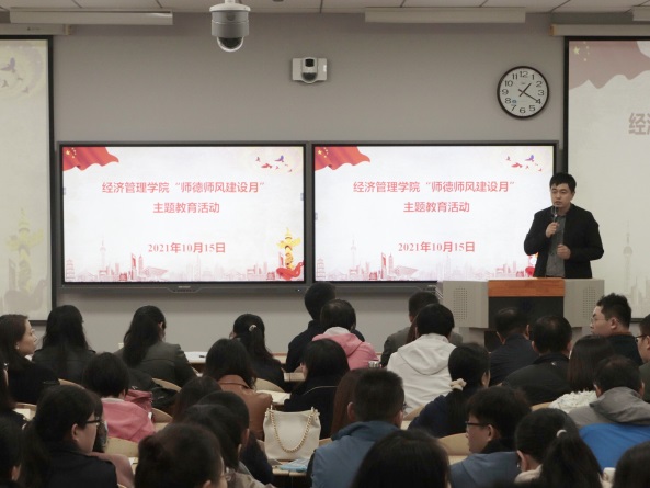 为进一步推动师德师风建设,引导广大教师以德立身、以德立学、以德施教、以德育德,10月15日下午,bat365在线中国官网登录入口在教2-211举办了师德师风建设专题讲座,学院党委书记姬浩担任主讲人,全院教师参加学习。