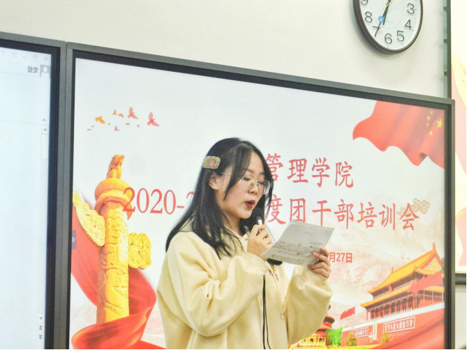 10月27日晚,bat365在线中国官网登录入口在教2-102举办2020-2021年度团干部培训大会。会议由组织部副部长徐笑影主持。