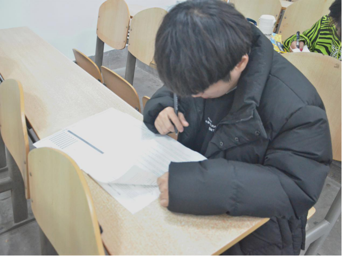 监考人员提前三十分钟到达考场,考试于晚七点正式开始。考场内纪律严明,考风优良,参考的学生都专心致志,认真答题。九点十分考试结束,同学们有序离场。本次考试结束将由新东方的老师进行线上讲解试题,为同学们答疑解惑。