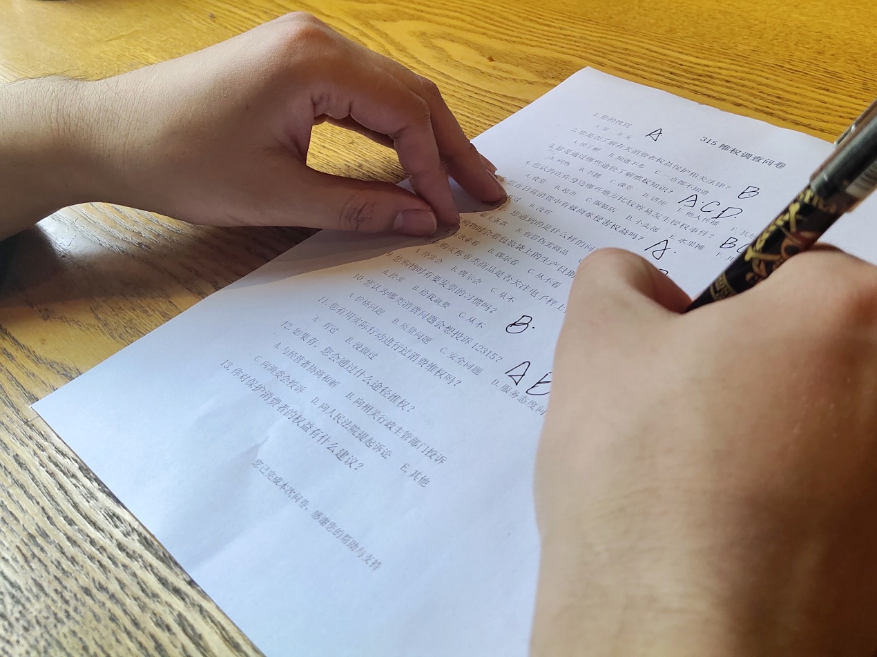 3月13日下午,bat365在线中国官网登录入口在博苑广场进行了有关消费者维权知识宣传活动,活动过程中,工作人员向同学们发放调查问卷。随后,工作人员对部分同学就“生活中的侵权行为”、“遭遇侵权时的维权方式”以及“对于校园宣传消费者权益知识”三个问题进行采访,调查过程中发现学生消费者在生活中时常遭受侵权事件,但是对于维权途径的了解并不充分,工作人员对同学们进行了相关知识的宣传与普及,并呼吁大家多多了解消费者权益保护相关知识,当在生活中遭受消费侵权行为时,学会运用法律武器捍卫自身的合法权益。